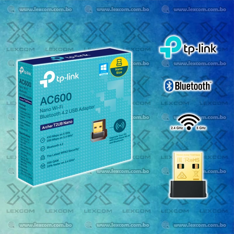 ADAPTADOR USB WIFI /BLUETOOTH TP-LINK MOD. Archer T2UB Nano - Bluetooth 4.2 - Frecuencia: 2.4 GHz Y 5 GHz - Sistema operativo compatible : Windows 11 / 10 / 8.1 / 7