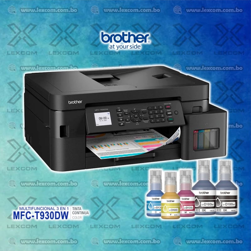 IMPRESORA MULTIFUNCIÓN INALAMBRICA BROTHER MFC-T930DW Especificaciones técnicas: - Tipo de impresora: Inyección de tinta color - Funciones: Impresión, Copia, Escanea - Conectividad: USB, WI-FI, Ethern...