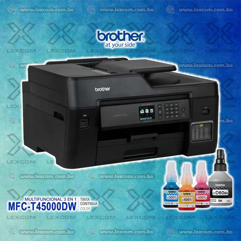 IMPRESORA DOBLE CARTA (A3) BROTHER MFC-T4500DW Especificaciones técnicas: - Tipo de impresora: Inyección de tinta color - Funciones: Impresión, Copia, Escanea - Conectividad: USB, WI-FI, Ethernet - Ta...